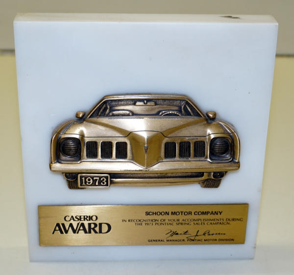 7"x6"x1", brass on marble, one corner is chipped, awarded for the 1973 Spring Sales Campaign