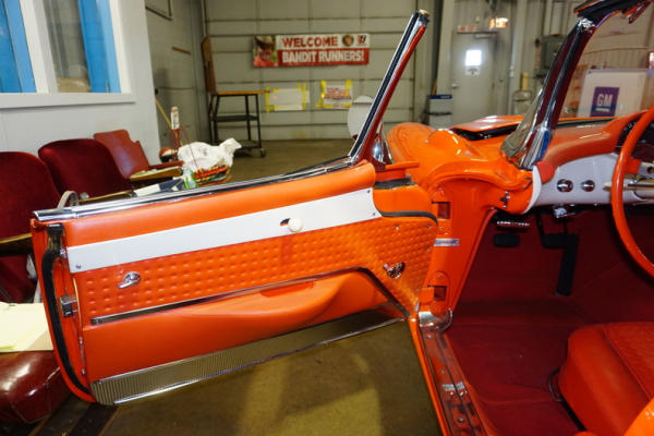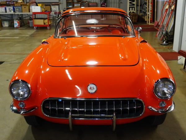 Venetian Red, 283/4spd, This car is about 95% restored back to NRCS standards! Posi traction rear end, has the hard top included, the frame work for the soft-top is restored & included, but no canvas; has new carpet inside that looks to be original, but NCRS judges said it is not correct, so Marv is including the correct carpet with the car to finish the restoration. Professional Paint, 1 of only 1,040 Factory Fuel Injected cars built and about 600 of them were 4spds. A true piece of American Sportscar History! NOTE: This car does not run as it sits right now. It needs a fuel line and a small list of other things for it to be completely finished. If you are a serious buyer on this car, I suggest calling Marv Spomer to get all the details. 507-360-9557. There are lots of extra 1957 Vette parts that are included too that the buyer will get.