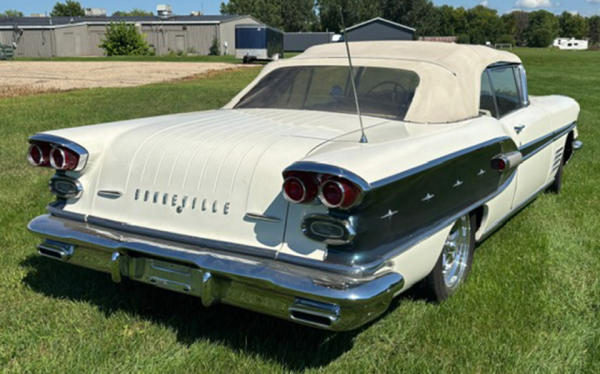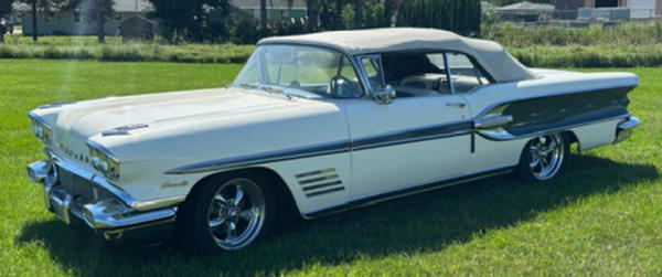 White w/ Blue Spear, white top, blue & white interior, V8, Auto, Power Steering, Power Brakes w/ upgraded front brakes to disc brakes, custom wheels, new interior