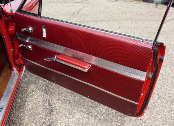 Red w/ White Top, all original except for a repaint, power steering, power brakes, high-end paint, a real show stopper!