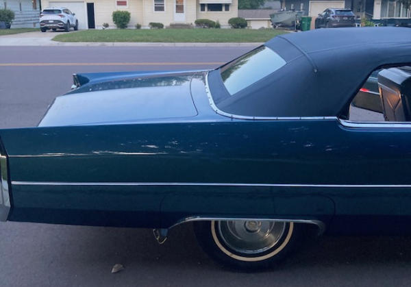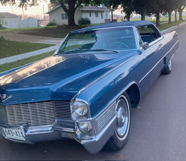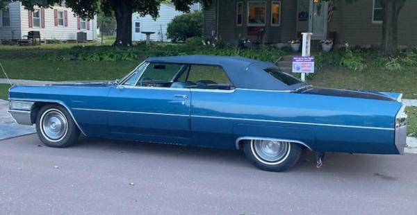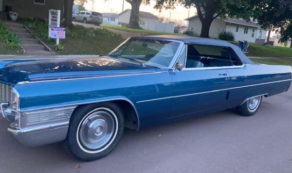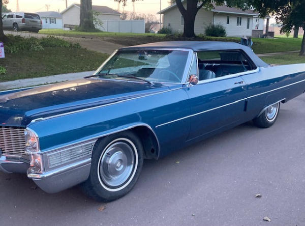 sold new in Worthington, local trade in 1975. Dark Blue leather interior, power everything, A/C, new convertible top, has spent many years as a parade car