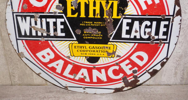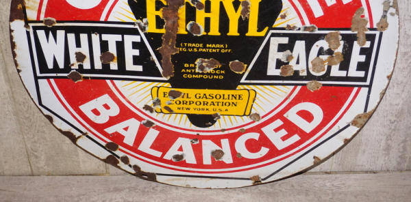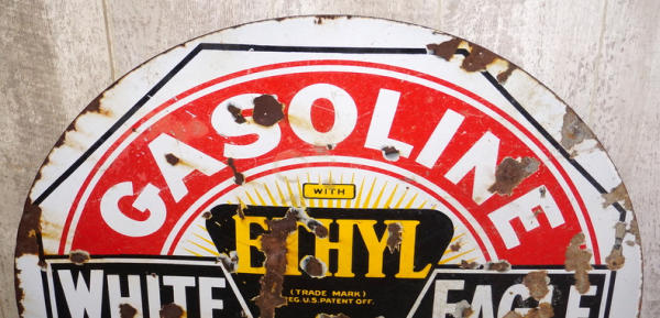 heavy chips on both sides and a few small extra holes, barn hanger, rates 6.5 condition