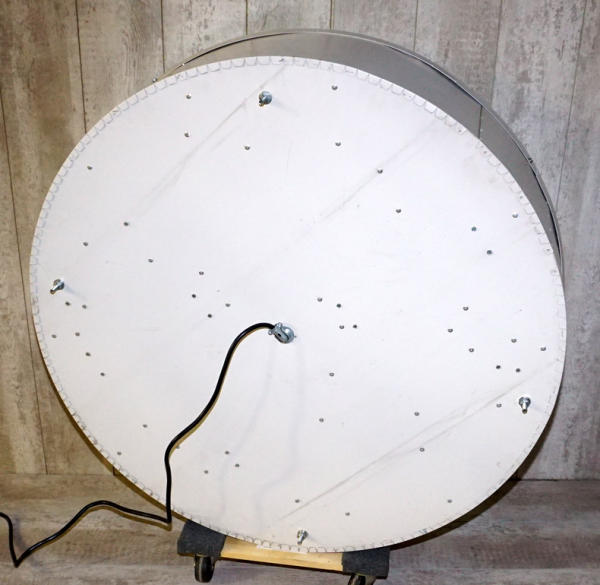 41" across, 11", plastic 3-D style face, original metal can, lights up and works A-1 condition