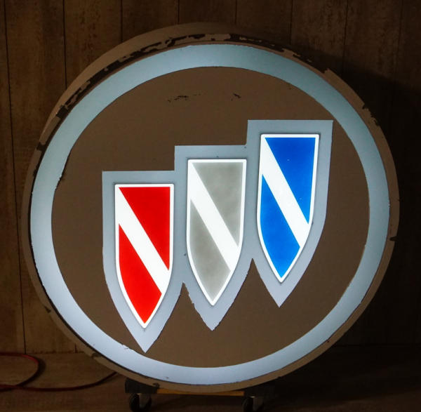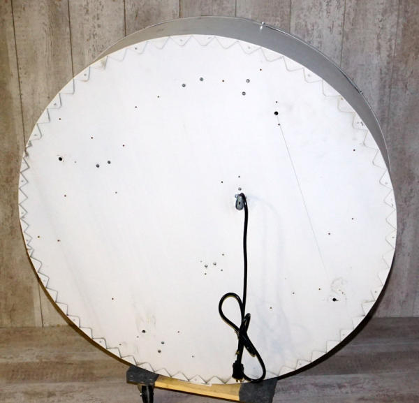 42" across, 11" deep, plastic 3-D Style face has a few light scratches, original metal can, lights up and works A-1