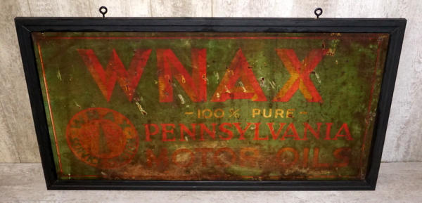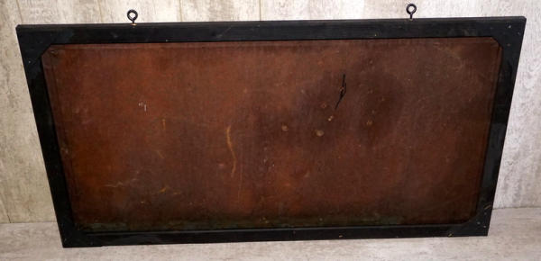 24"x44" as shown, really faded and worn, has small nail holes & dings, heavy patina sign, but a very rare sign too