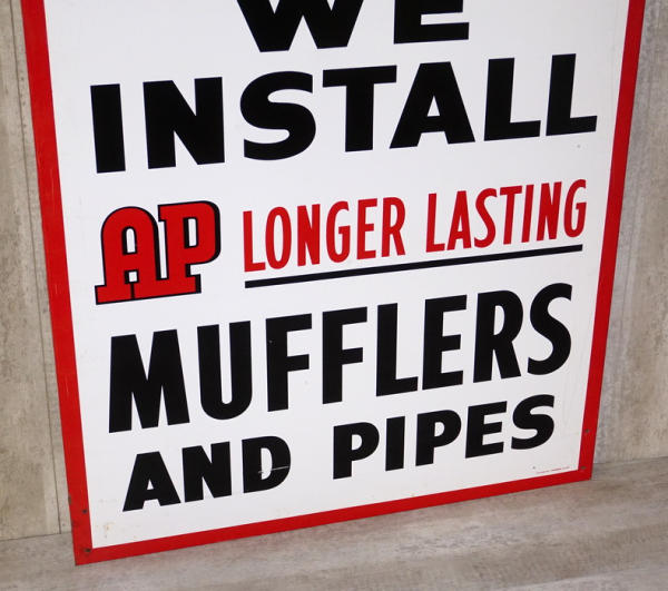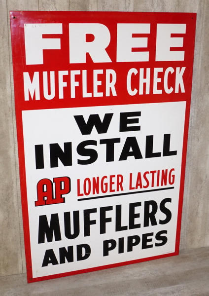 69"x45", wood back, NOS sign, but has a few lights scratches and scuffs from storage and edge wear, rates 8.75 condition