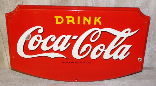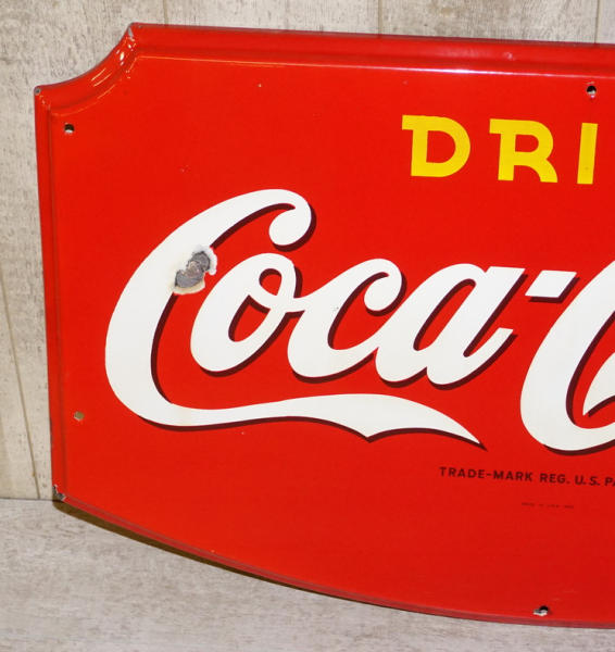 21"x36", dated 1942, great color and gloss, one large chips in the first "C" and one on the right edge, rates 8.25 condition