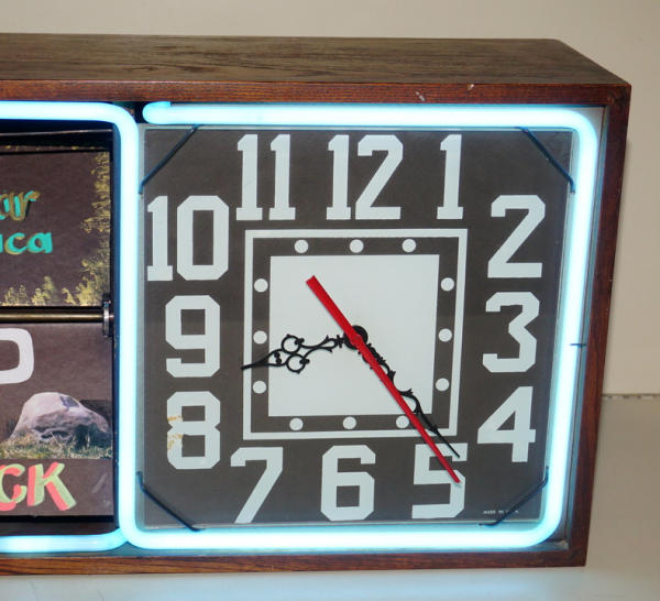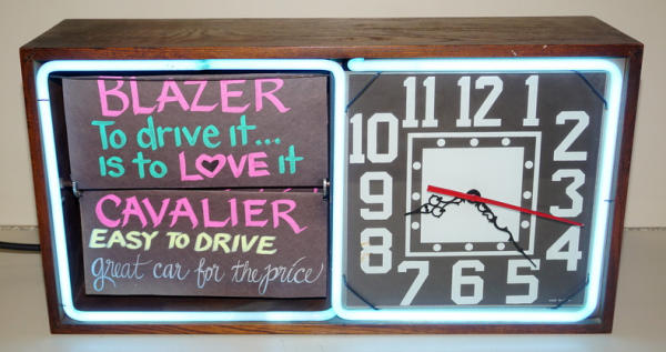 12"x24", bright new, new cards on the sides advertising "Spomer Motors" and others, neat piece, heavy wood case