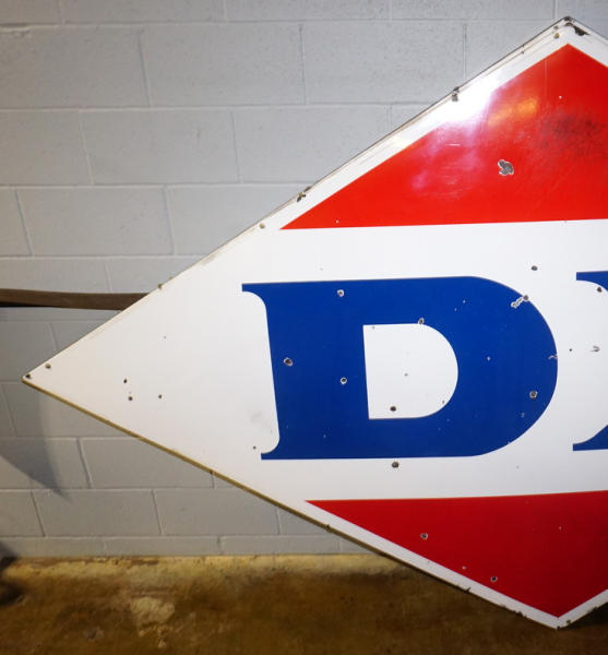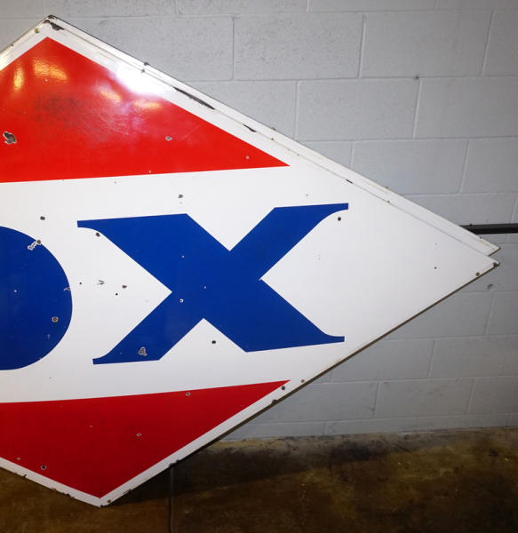 68" tall, 118" wide, has several smaller chips throughout the sign, still displays well