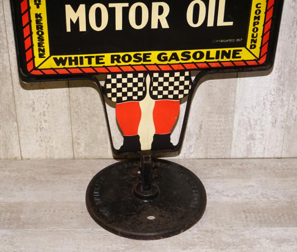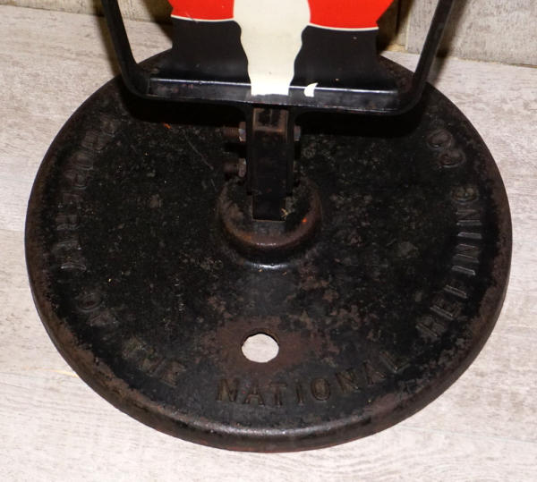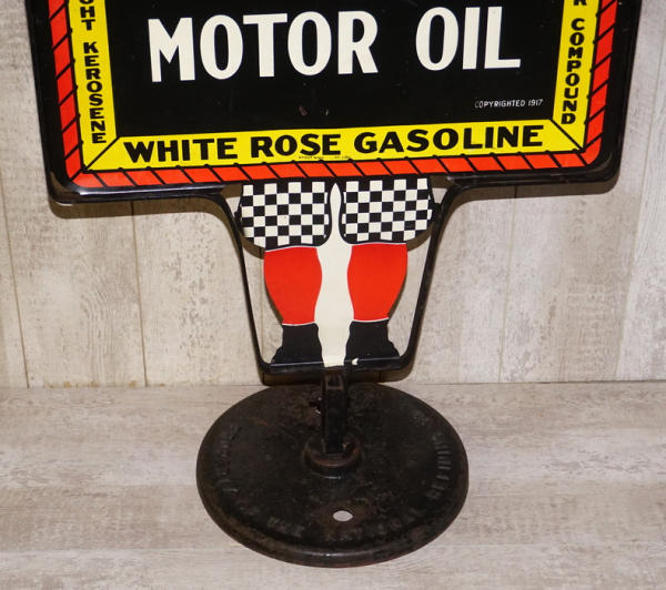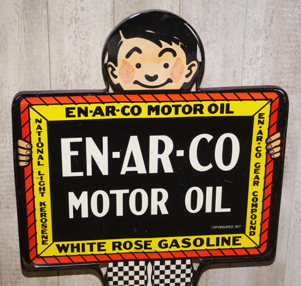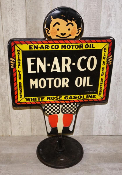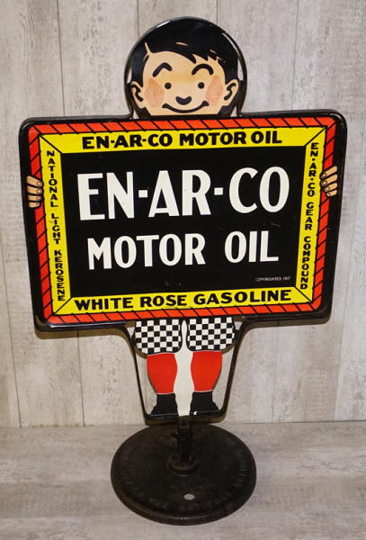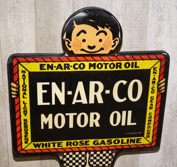 27"x45" overall, dated 1917, both sides are really clean and nice, rates 9 condition, original "National Refining Co. base", probably one of the best examples of this sign known to exist!