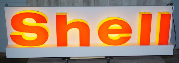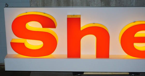 29"x96", plastic letters, metal can and base, lights up and works good