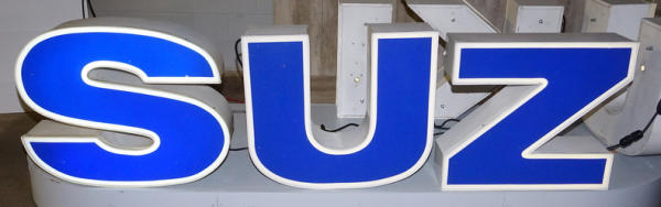 6 Individual letters, each letter is about 25" tall, about 170" when all assembled, each letter is it's own individual light on it's own, this would be a great sign if you are into vintage Japanese motorcycles!