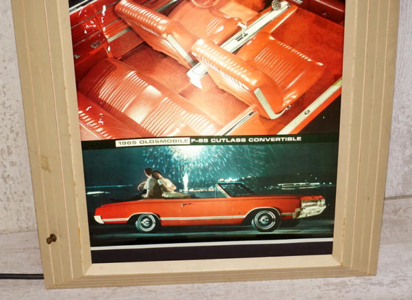 29"x22", plastic face, wood frame, works good, has some spots of graphic loss in the face, but still nice