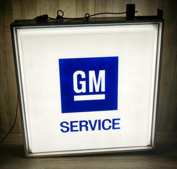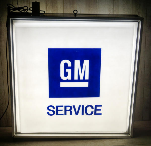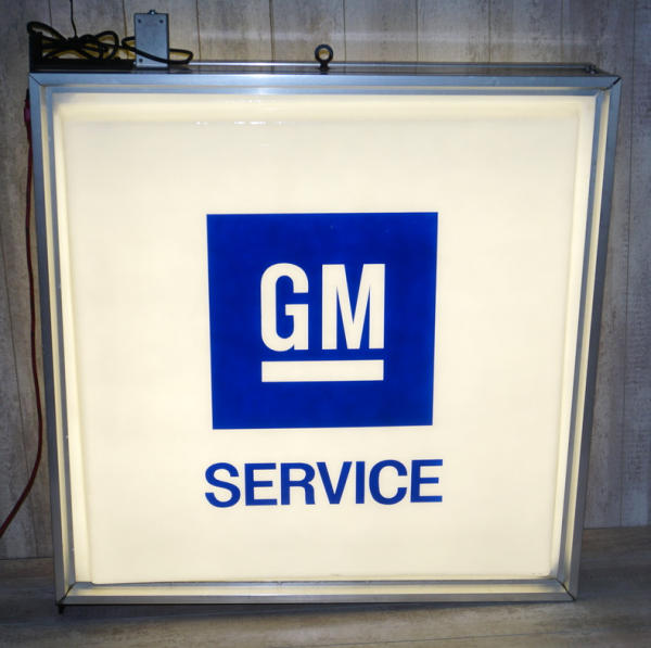 50"x50"x18", both sides are really bright & clean, heavy sign, original metal can