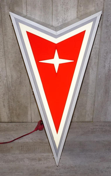 42"x21.5" overall, lights up and works good, plastic face, original metal can