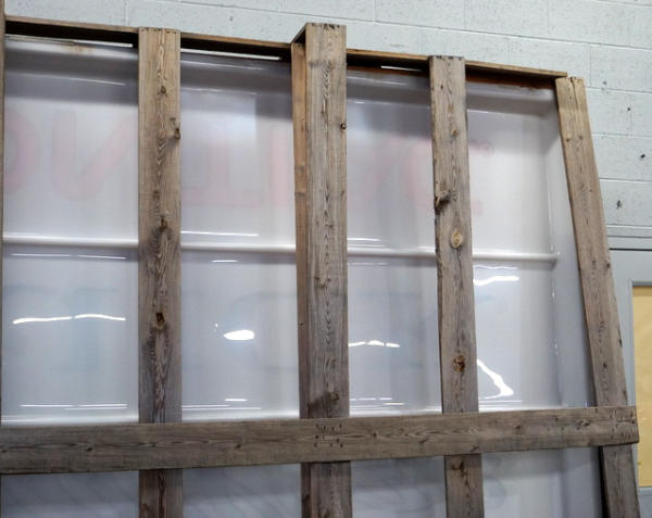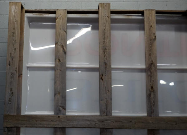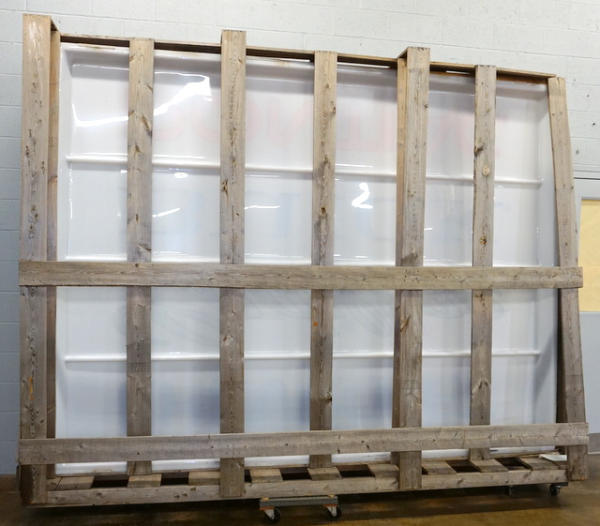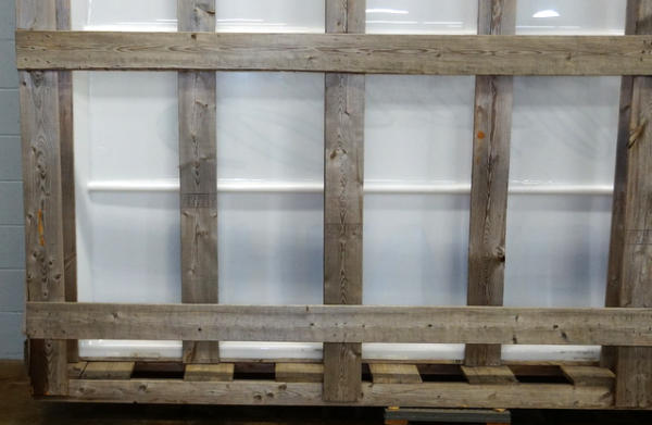 2 plastic panels that are in the crate, 1990's vintage. They were used and put back into the crate that the new signs were shipped to the dealer, noce does have a crack in it. We did not take the crate apart for the pictures, pickup in Worthington, MN only--bring help to load!