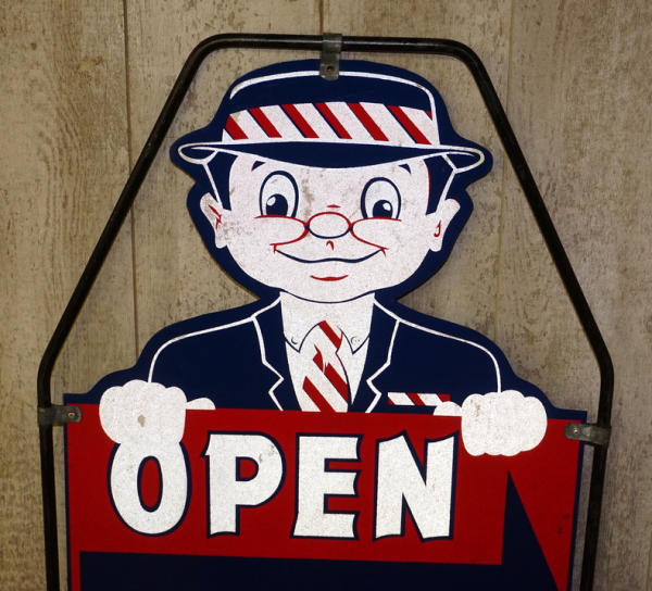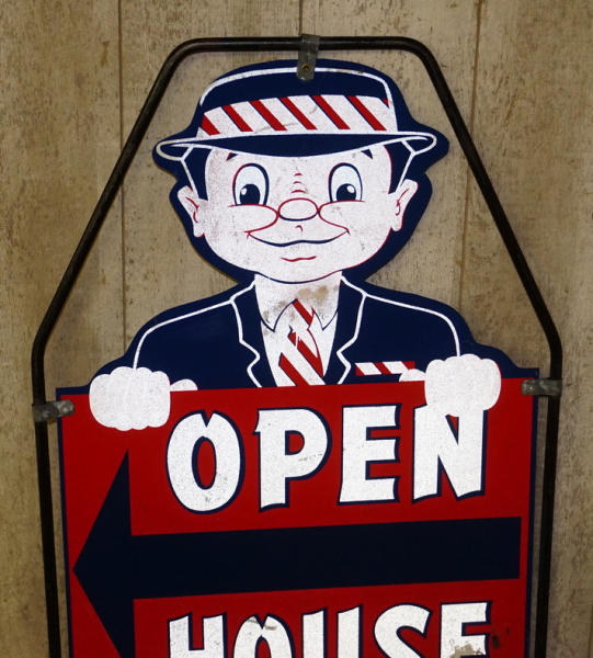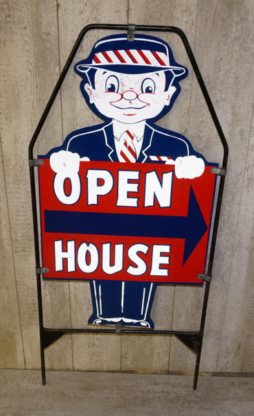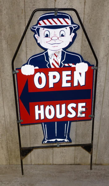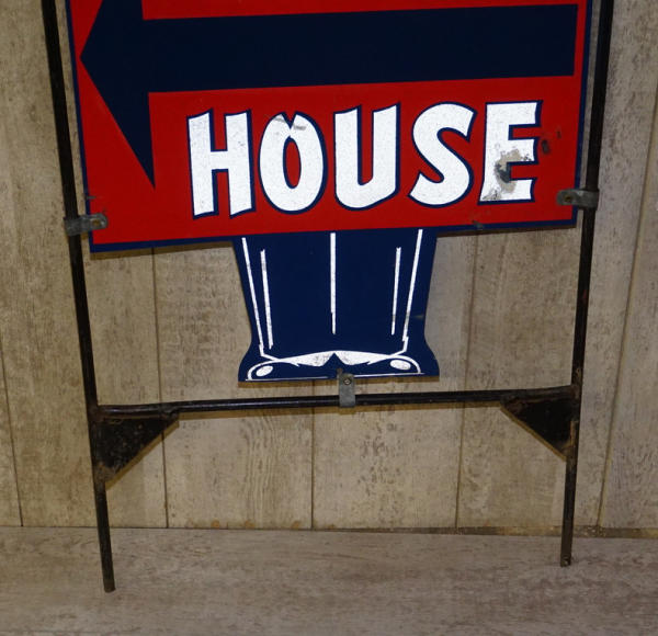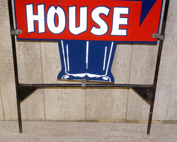 sign is 36"x20", both sides are very nice, original steel frame, reflective finish, few age spots, rates 8.5 condition