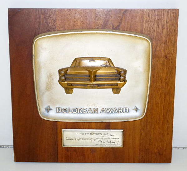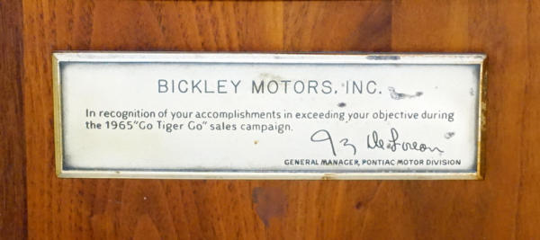 14"x14", heavy metal on thick piece of walnut, Awarded in 1965 for the "Go Tiger Go" Sales Campaign, some light wear,, but overall very nice