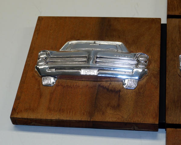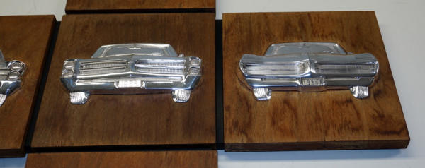 22"x22" as showing, all pieces are dated 1965 to 1967, some fading and wear to the wood backing, unique set