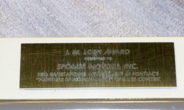 21"x25", nicely framed and matted, awarded to Spomer Motors