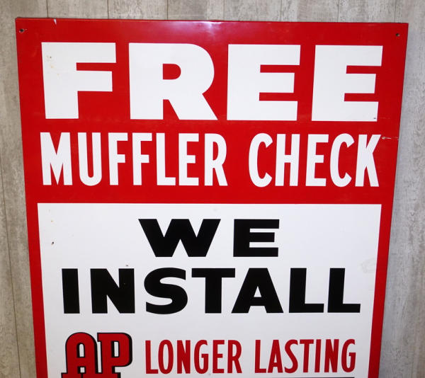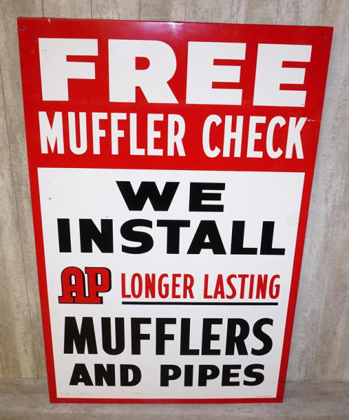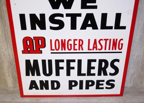 69"x45", wood back, NOS sign, but has a few lights scratches and scuffs from storage and edge wear, rates 8.75 condition
