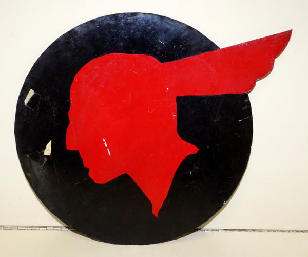 15"x19", one side has been repainted, other side is original, but the diecut feather doesn't match up to the cut, no holes