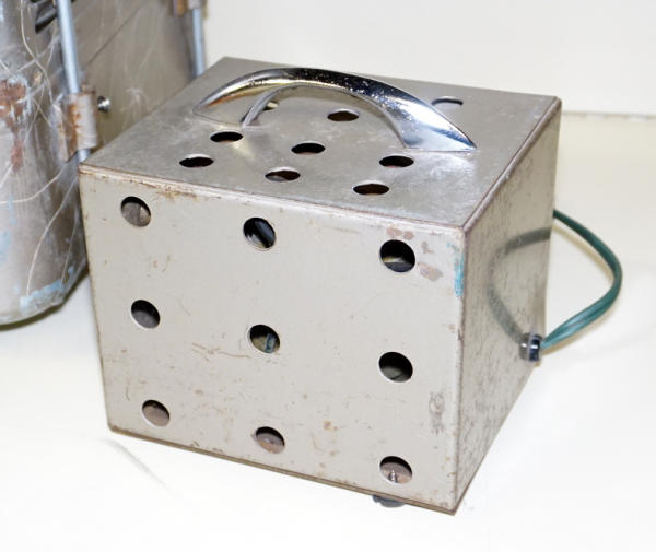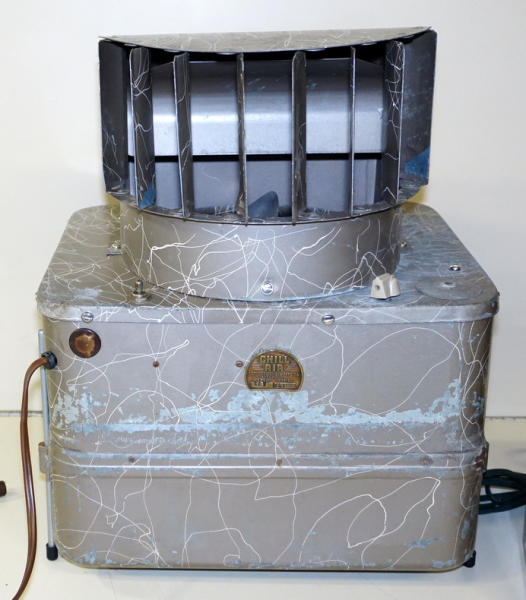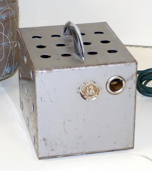 really unique and nice condition, 18" tall, 14"x12" base, comes with a 12v convertor too so you can use it in your home or auto, free standing, some paint loss, but overall good condition, only one we ever seen