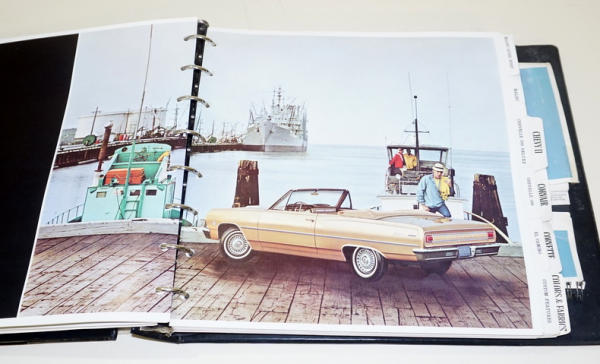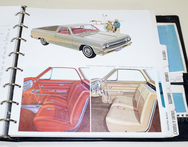 100+ pages including samples of the interior and paint, cover is torn off and was taped, some general wear to the contents, but still a good book