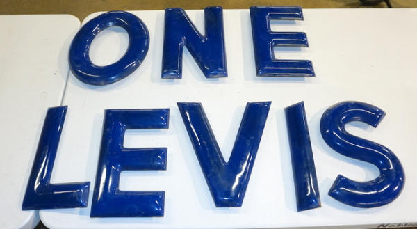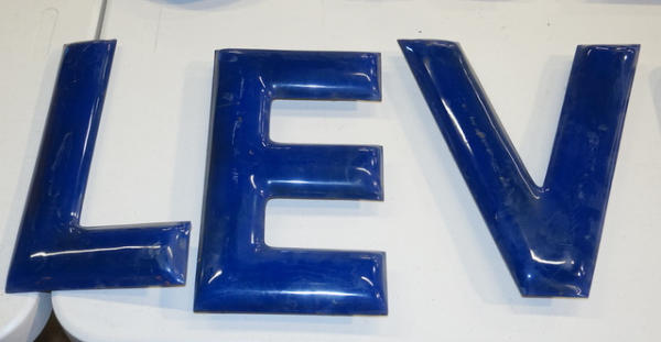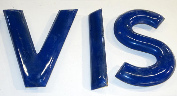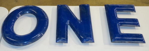 all 12" letters with pins on the back, not sure what it was supposed to spell, but this is what Google says, some scuffs, same color blue as the Mobil earlier in the auction