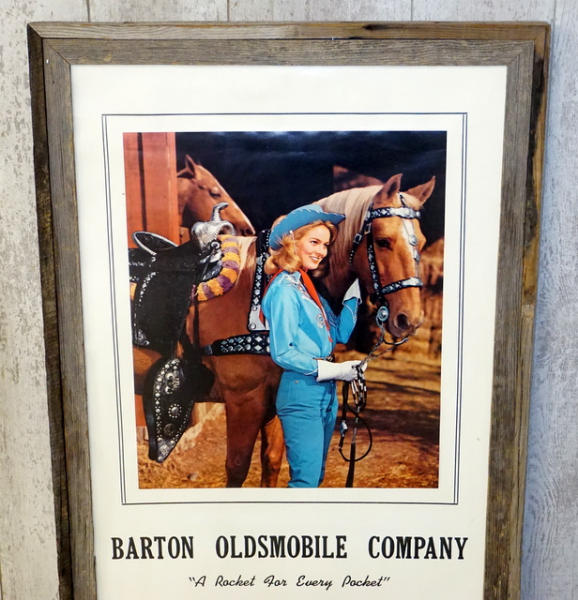 49"x25", really clean and nice, great cowgirl print, barnwood frame, nice piece