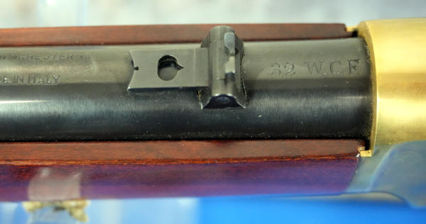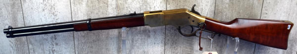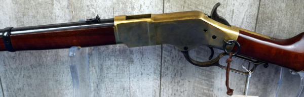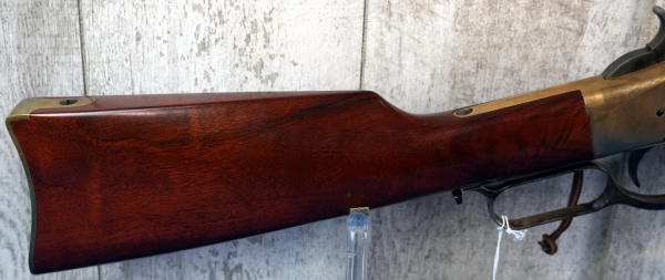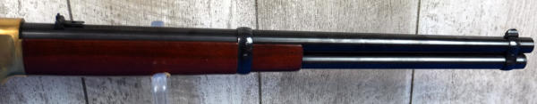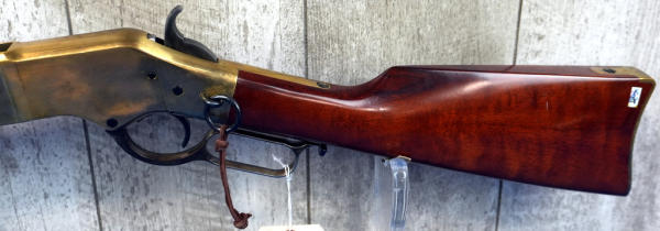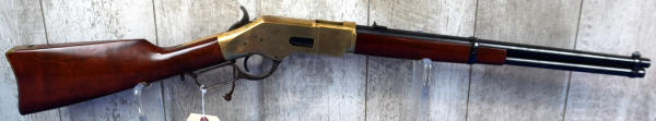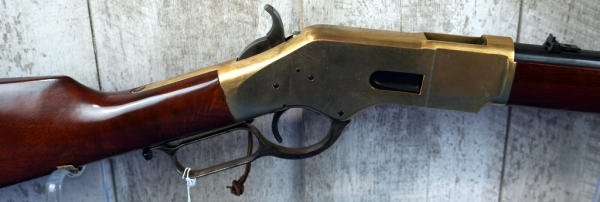 Uberti; 19" Rnd. BBL; brass receiver & butt plate; case hardened lever & hammer; fired but very little; saddle ring; Italy; SN#97150; A-192