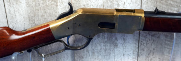 19" Rnd. BBL; brass receiver & butt plate; case hardened lever & hammer; has been fired; Italy; SN#75656; A-192