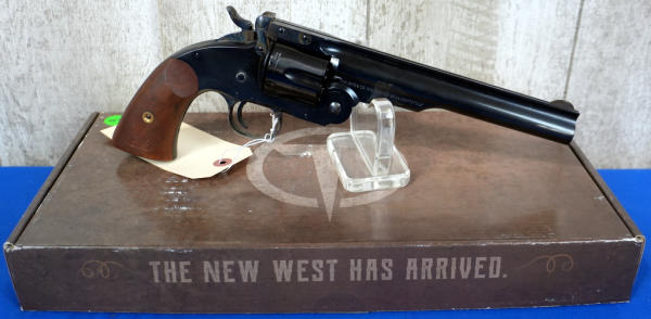 Uberti; 7" BBL; easy open action; looks unfired; factory soft case & box; case hardened hammer, trigger guard & latch release; wood grips; half moon front sight; 6-shot; Italy; SN#F24050; A-192