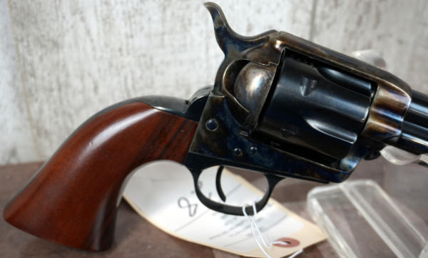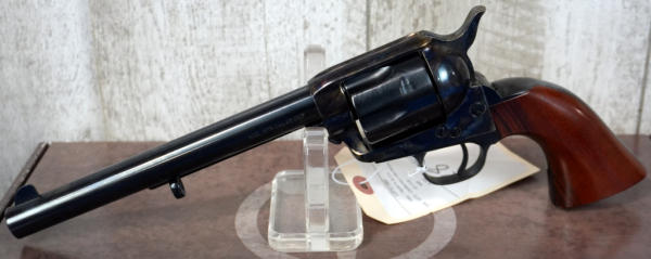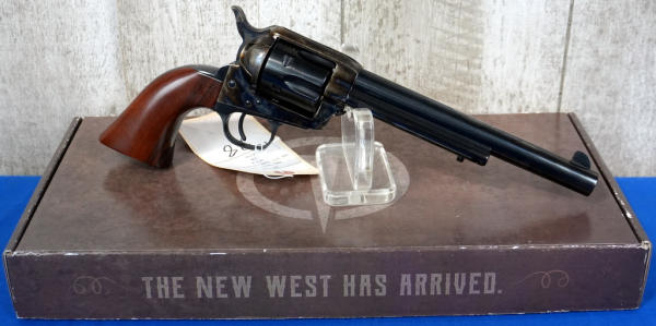 Uberti; 7.5" BBL; case hardened receiver & hammer; wood grips, does have a small chip on bottom of left grip; 6-shot fixed cylinder; unfired; factory soft case & box; Italy; SN#UP5180; A-192