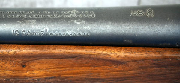 22" Rnd. BBL w/6.5" Cutts Compensator; factory engraved receiver; bluing is dull & thin; wood stock has been refinished & stamped "FJA"; US Ordinance stamped on receiver & BBL; 2.75"; USA; SN#460117; A-192