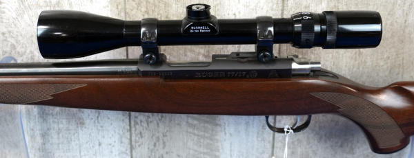 22" BBL; smooth action; very nice wood stock; Bushnell Banner 3x-9x scope; removable magazine; nice & clean; USA; SN#703-06302; A-192