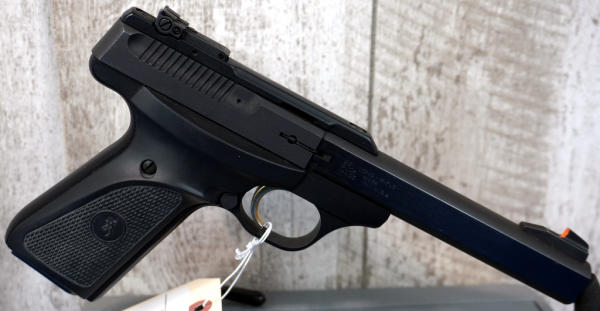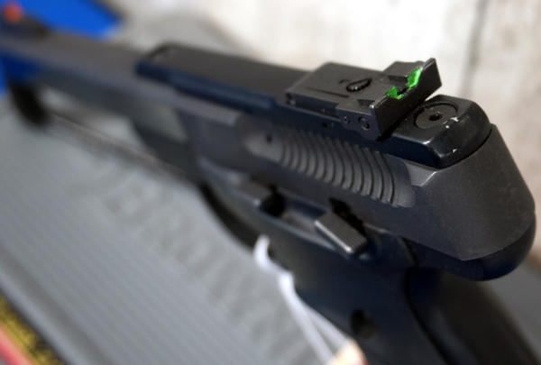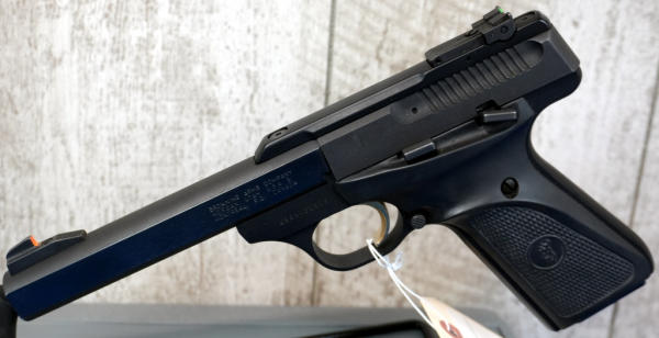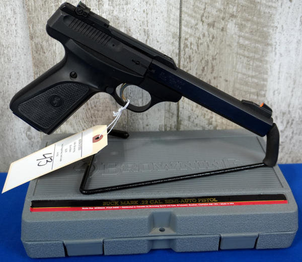 5.5" BBL; rubber checkered grips; gold trigger; rear adjustable sight; sights have been painted orange & green; two magazines; factory hard case; USA; SN#655NV31503; A-192