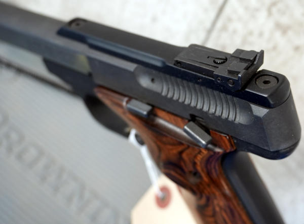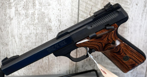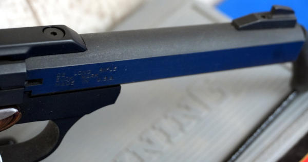 5.5" BBL; wood grain laminate grips; gold trigger; adjustable rear sight; two magazines; factory hard case; very clean; USA: SN#655NV32407; A-192
