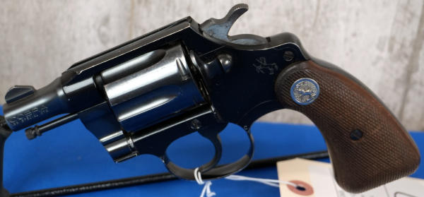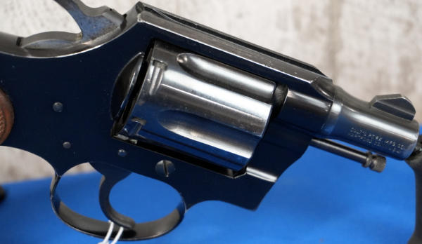 2" BBL; 6-shot swing out cylinder; factory wood checkered grips; has some very minor bluing loss by muzzle, overall nice used condition; USA: SN#75068; A-192