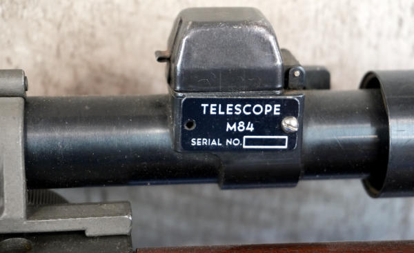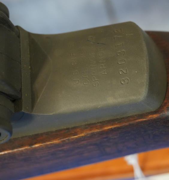 23" BBL w/3.5" flash hider; SA-8-52 BBL; extremely nice wood stock w/good cartouche on left side; Reproduction M84 Telescope (NSN). Flash-hider gas plug ass'y, MRT 6-52 leather cheek pad, and MRT 10-69 leather sling; looks like all Springfield components; USA: SN#3203172; A-192