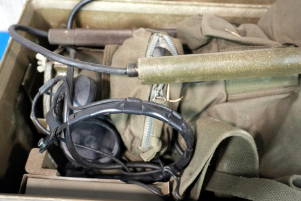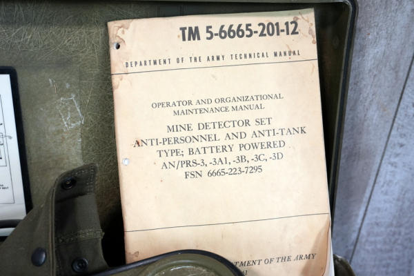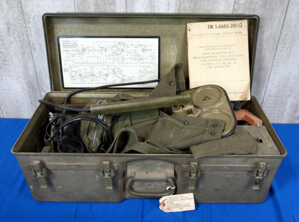looks like it's never been out of the original case; includes the ops manual and all the accessories; case is 27"x12"x9"; head of detector is dated Nov/54