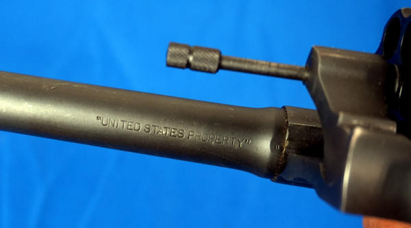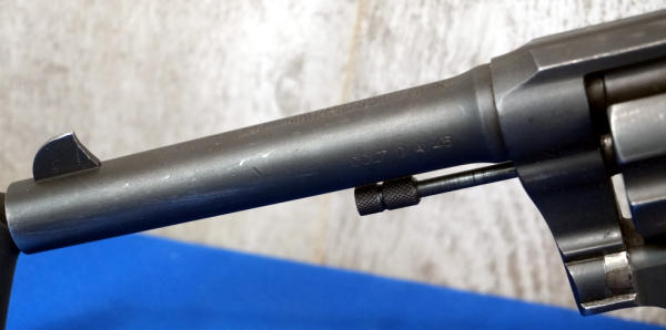 5.5" BBL; parkerized finish; smooth wood grips; 6-shot swing out cylinder; marked "United States Property" on bottom of BBL; bottom frame ID marked 14810; USA; SN#166991; A-192