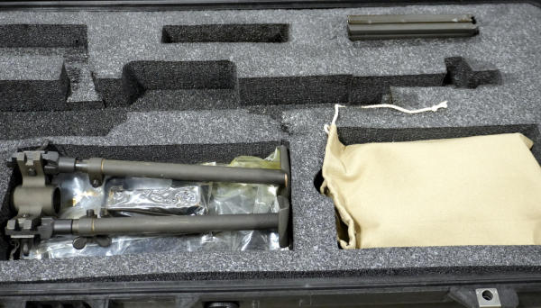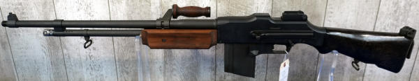 NIB, but fitted with late WWII/Korean era Bakelite stock. Fitted Pelican case with all accessories (incl. repair parts kit in bag, bipod, manual, web sling, & 4 magazines). Also includes reproduction wood stock, WWII wood forearm, and damaged WWII leather sling (all separate from the case). 24" Threaded BBL; carry handle; USA; SN#2720; A-192