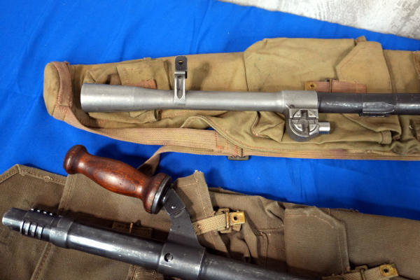 both barrels are 25" long; one has stainless muzzle; wood handles are different; each has a canvas carry case; sell 2x the money