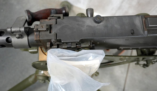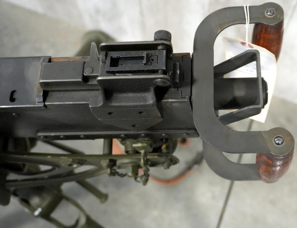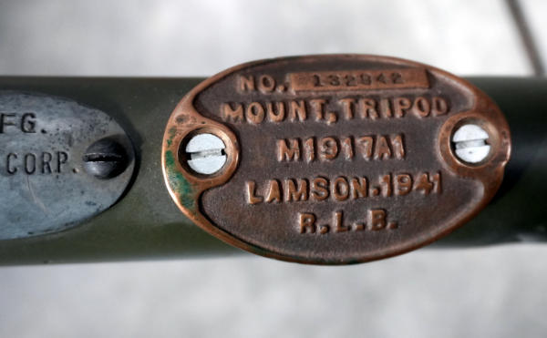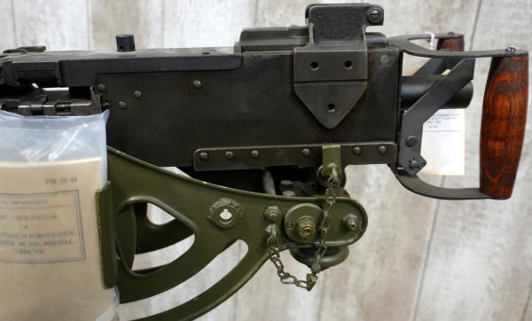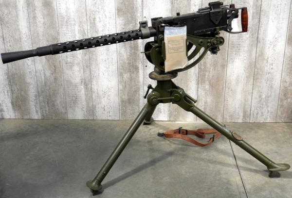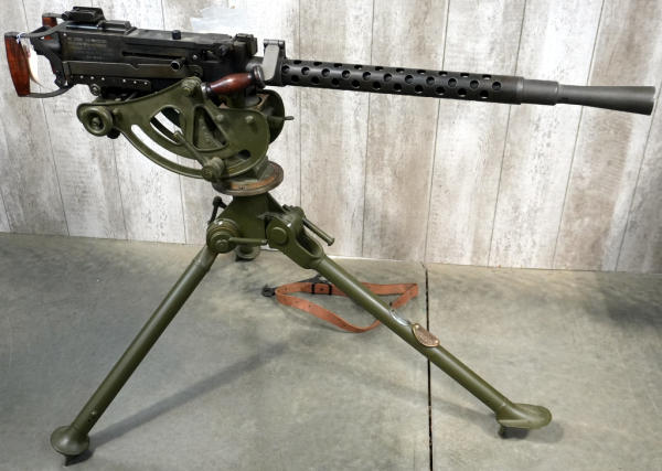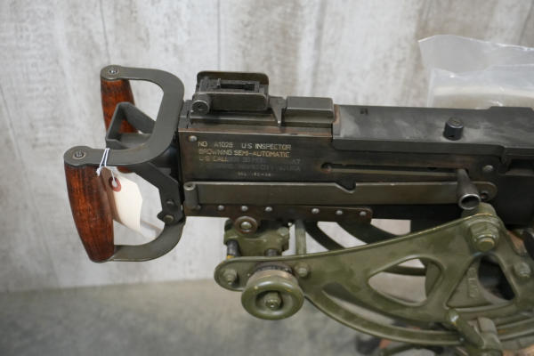 Fitted with a semi-auto side plate; spade grips; w/ restored M1917 tripod made in 1941 and refurbished in 1945 by Lamson Corp; with T&E. 30" BBL w/heat shield; wood handles on spade grips & barrel handle; original book; check pics for details; very heavy, prefer local pickup due to size and weight; would have to ship in two separate boxes if needing shipped; has original wrench and a leather strap (not sure what the strap goes to but was with the gun); SN#A1028; A-192