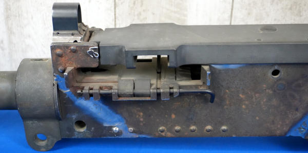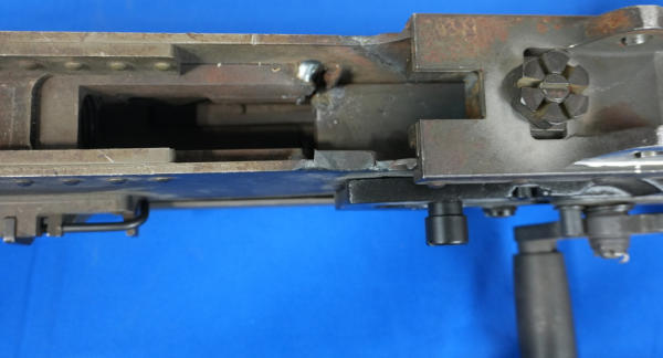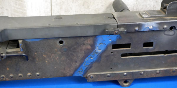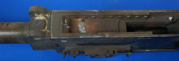 missing parts; has welds; no BBL, just a heat shield; check pics for more description; buying as a parts gun, no transfer needed; Prefer local pickup due to size & weight; overall length is 58"; SN#2406491