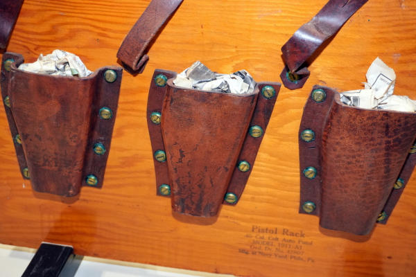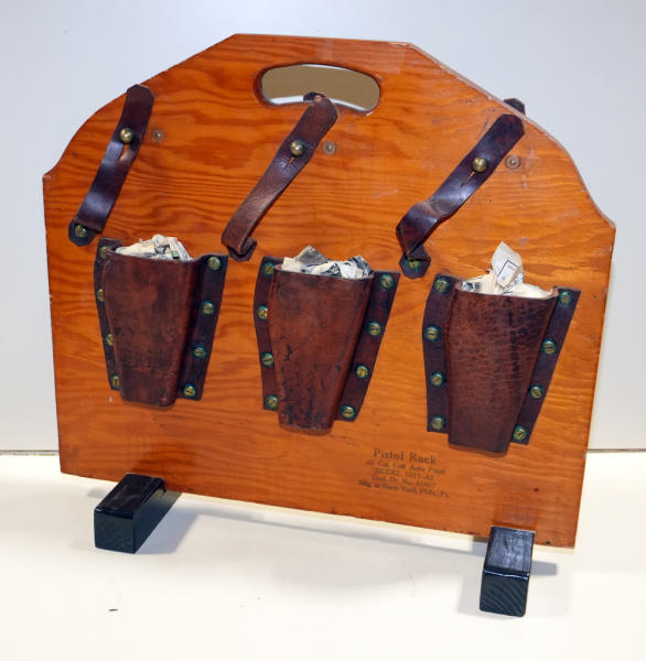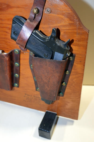 we've had a couple of these over the years, but this is by far the nicest one to come through! Used to take 1911's to the field for training, would hold 6 total; nice wood & leather; comes with a plastic 1911 for display; good stamps; 18"Lx16.5"W