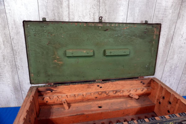 would hold 30 pistols; a true "Barn Find," needs a good cleaning, pulled right out of the barn! No date, metal edges has rust; don't see a date