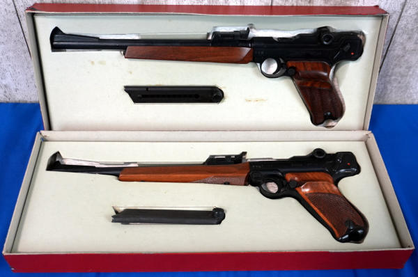 Not from Yuly Estate; owner wants to keep these together since they are consecutive serial numbers; they will sell 2x the money; both look mint and NIB; 11.5" BBL; wood forearm & wood checkered grips w/thumb rest; original factory boxes; each has one magazine; great set of collector weapons and in great shape; maybe could use a detailed cleaning just from years of storage; Western Germany; SN#81495 & 81496; A-221