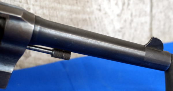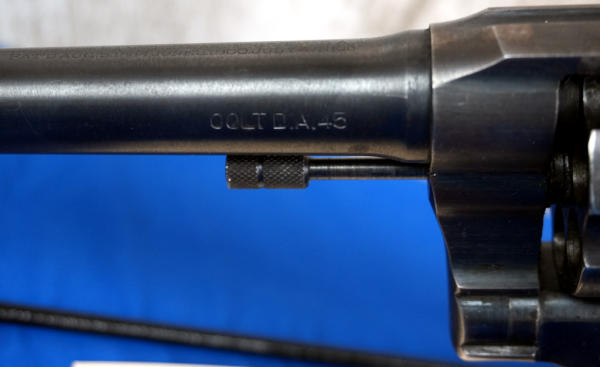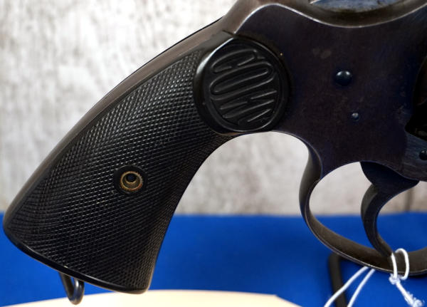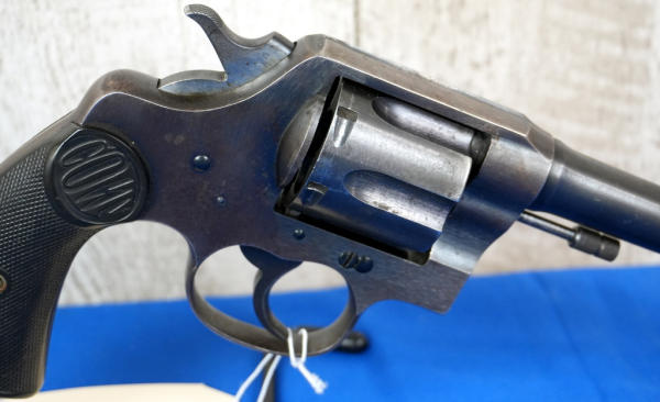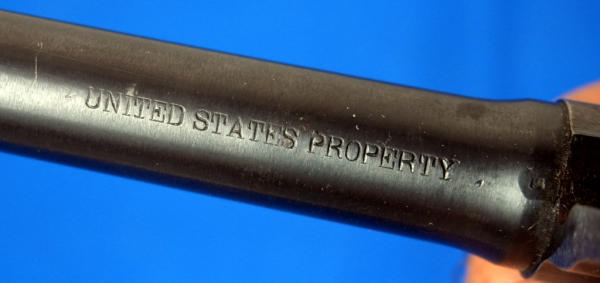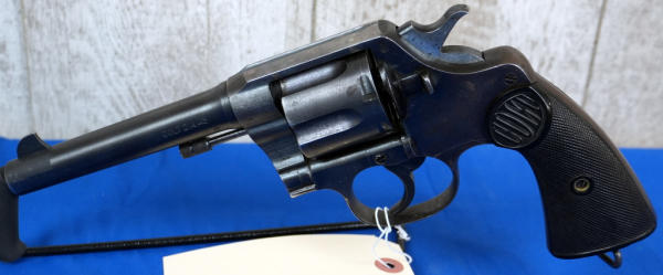 5.5" BBL; US Property marked; nice bluing; plastic/Bakelite checkered grips. Frame bottom US ID 63184; 6-shot swing out cylinder; USA; SN#237143; A-192